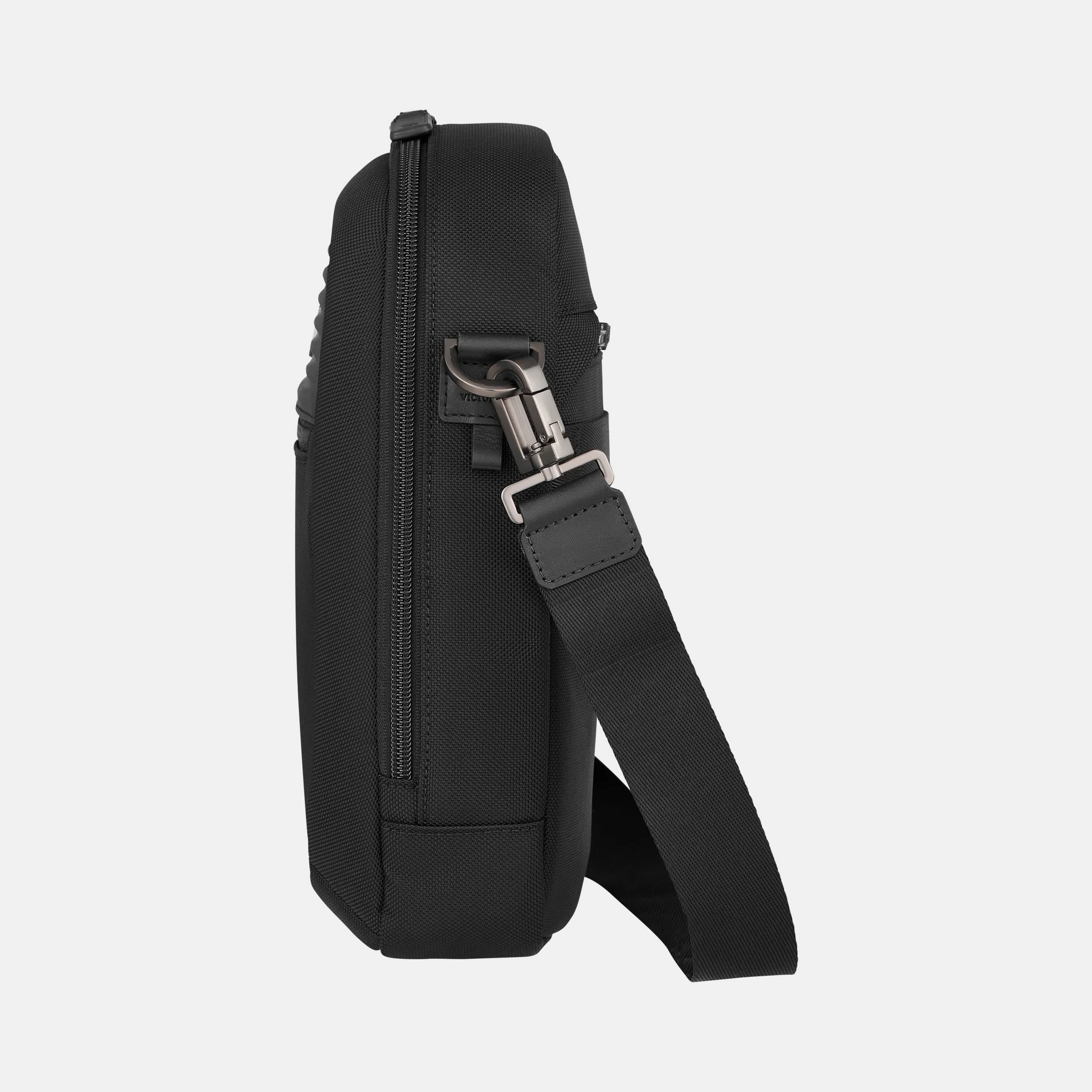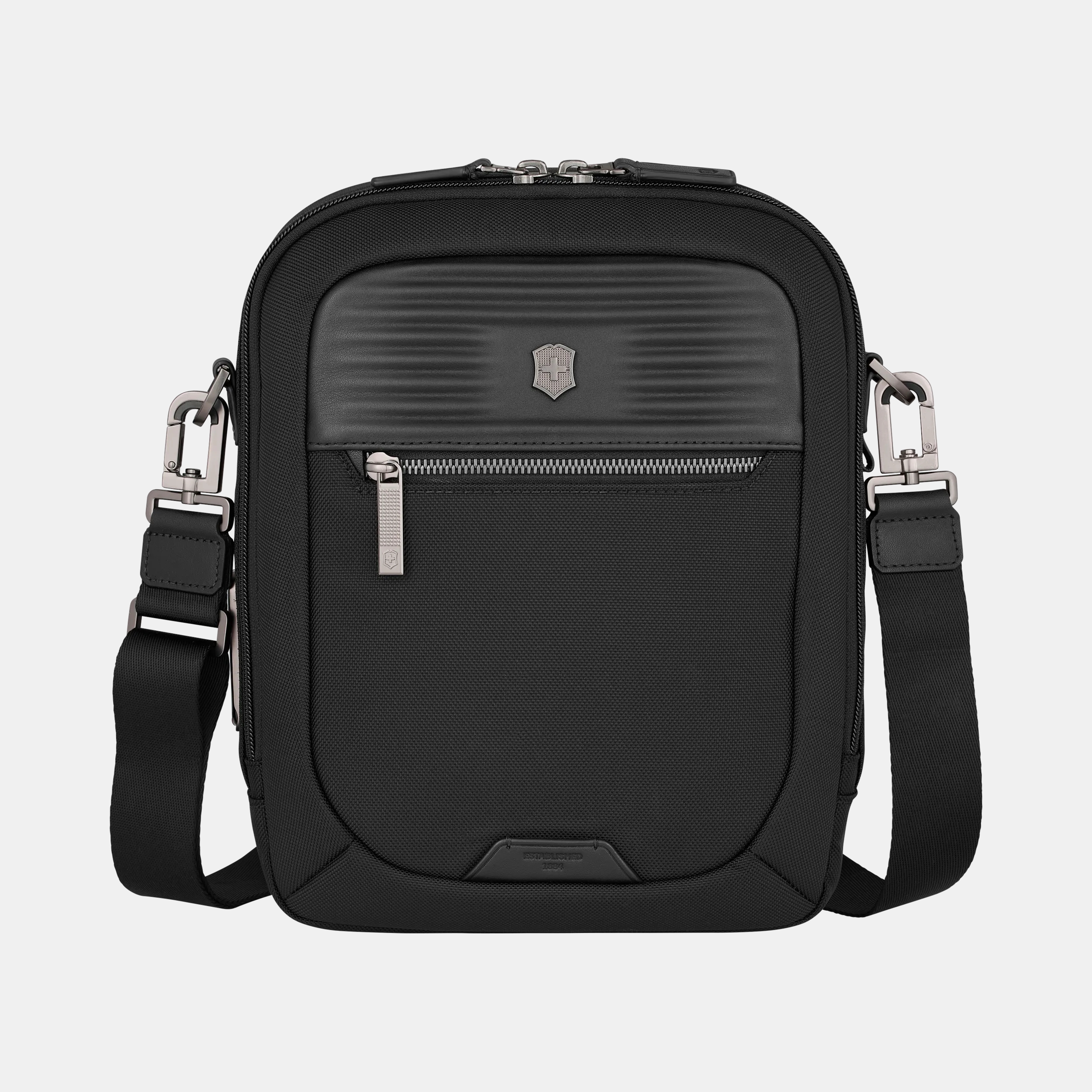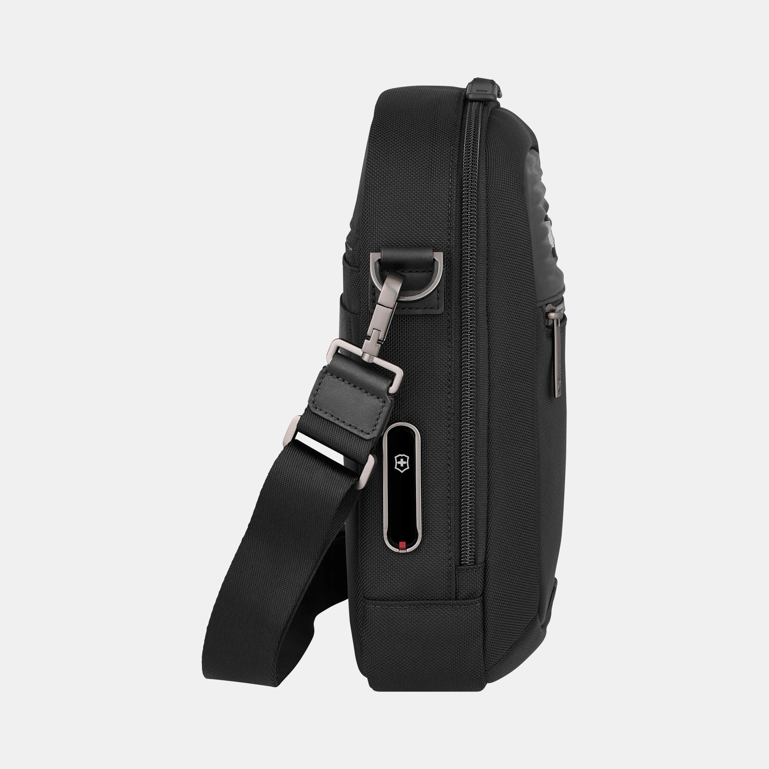 La Mythic Crossbody Bag, ideal para viajeros frecuentes y viajes de negocio, presume una artesanía elegante, materiales de primera calidad y un diseño negro elegante. El cierre con tirador de cuero genuino agrega un toque sofisticado, mientras que la correa para hombro extraíble y ajustable se adapta a tus necesidades. El compartimiento para tablet de 11" tiene espuma resistente a impactos y un recubrimiento resistente a las rayaduras. Con un bolsillo trasero de fácil acceso, una correa acopladora para equipaje y hebillas reforzadas, este bolso combina estilo con funcionalidad. Las opciones de personalización te permiten agregar tu nombre o iniciales, lo que facilita la identificación. Dentro, tiene un bolsillo con cierre, un bolsillo para bolígrafo y dos bolsillos deslizantes.