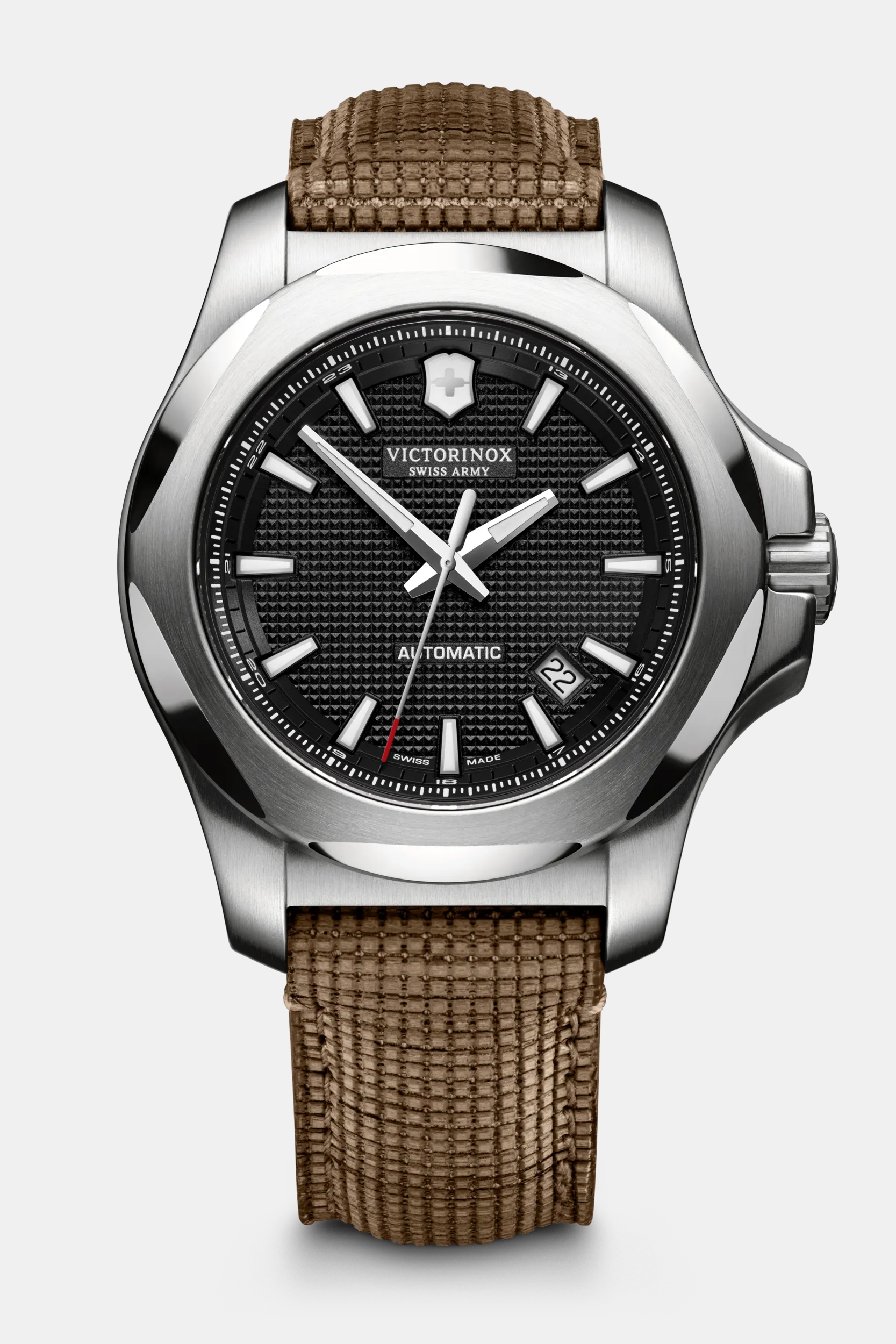 Przedstawiamy zegarek I.N.O.X. w najnowszej odsłonie: I.N.O.X. Mechanical. To model, w którym mechanizm kwarcowy zastąpiono starannie zaprojektowanym i precyzyjnym napędem – jak sama nazwa modelu wskazuje – mechanicznym. Zegarek wyróżnia giloszowana tarcza – oryginalny, a zarazem ponadczasowy detal w stylu szwajcarskich noży oficerskich. Dopełnieniem tego wyjątkowego zestawu jest drewniany pasek, pierwsze tego rodzaju rozwiązanie w kolekcji Victorinox. Solidny, wytrzymały, podszyty skórą – to idealna innowacja utrzymana w ekologicznym duchu. Nic dodać, nic ująć!