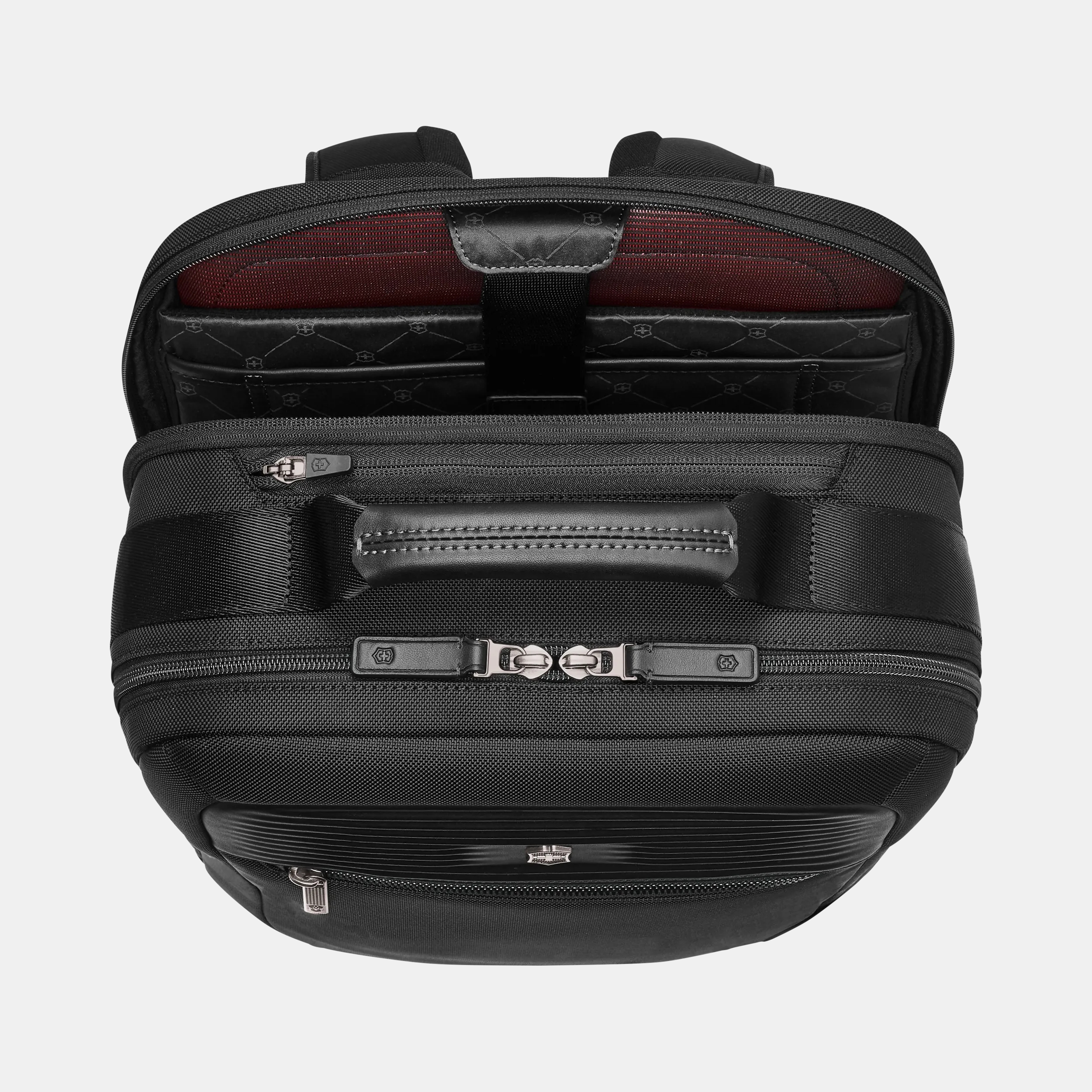 Mythic 豪華背囊配備飾有 Alox 圖案的保護包腳,並設有兩個寬敞的電子用品隔層。一個以抗撞擊海棉製成且有彈性的 15.6 吋手提電腦口袋和一個 11 吋加墊平板電腦口袋,確保您的設備安全穩妥。旅行箱拉桿套方便您輕鬆拿取護照等必需品。可調校肩帶讓佩戴舒適,而精巧的收納空間令這款產品成為工作和旅行的完美拍檔。
